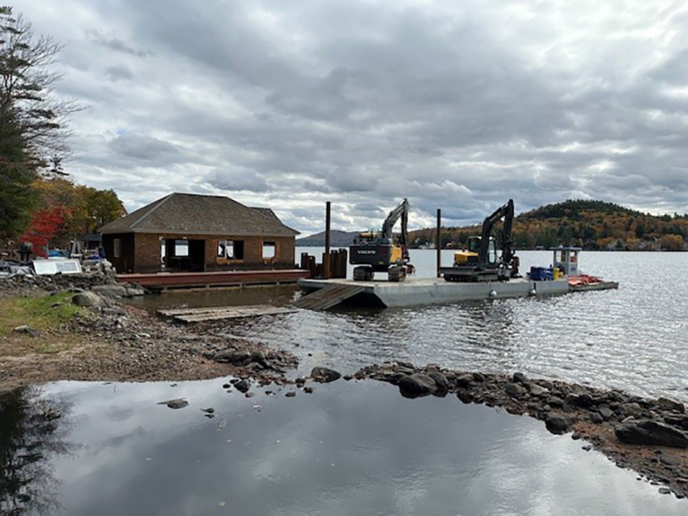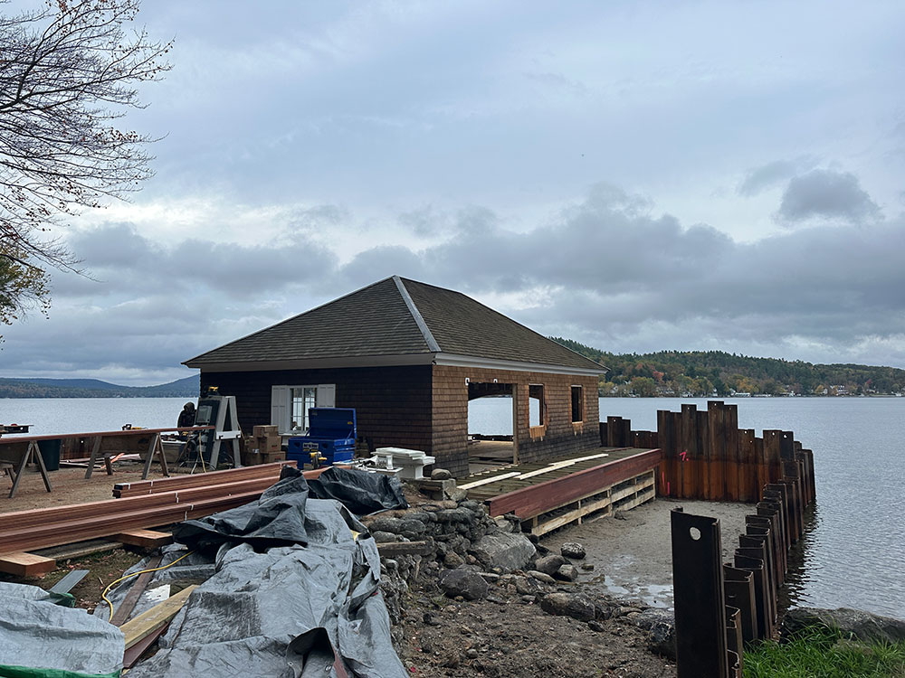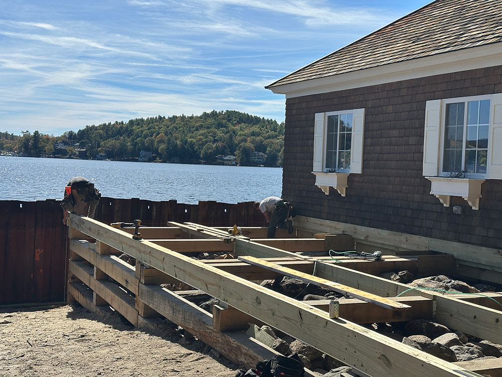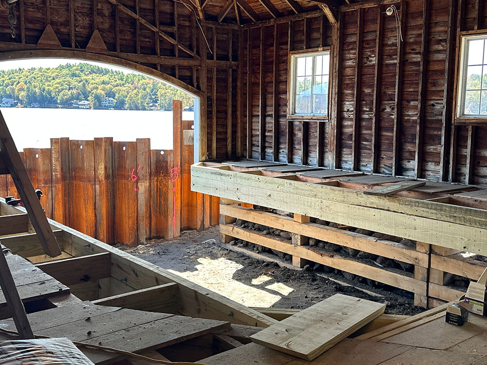 Originally built in the 1930’s, this boat house is getting a makeover. Hansen Marine started the project with replacing the cribbing and our team has moved in to give this structure some updates and an interior makeover.